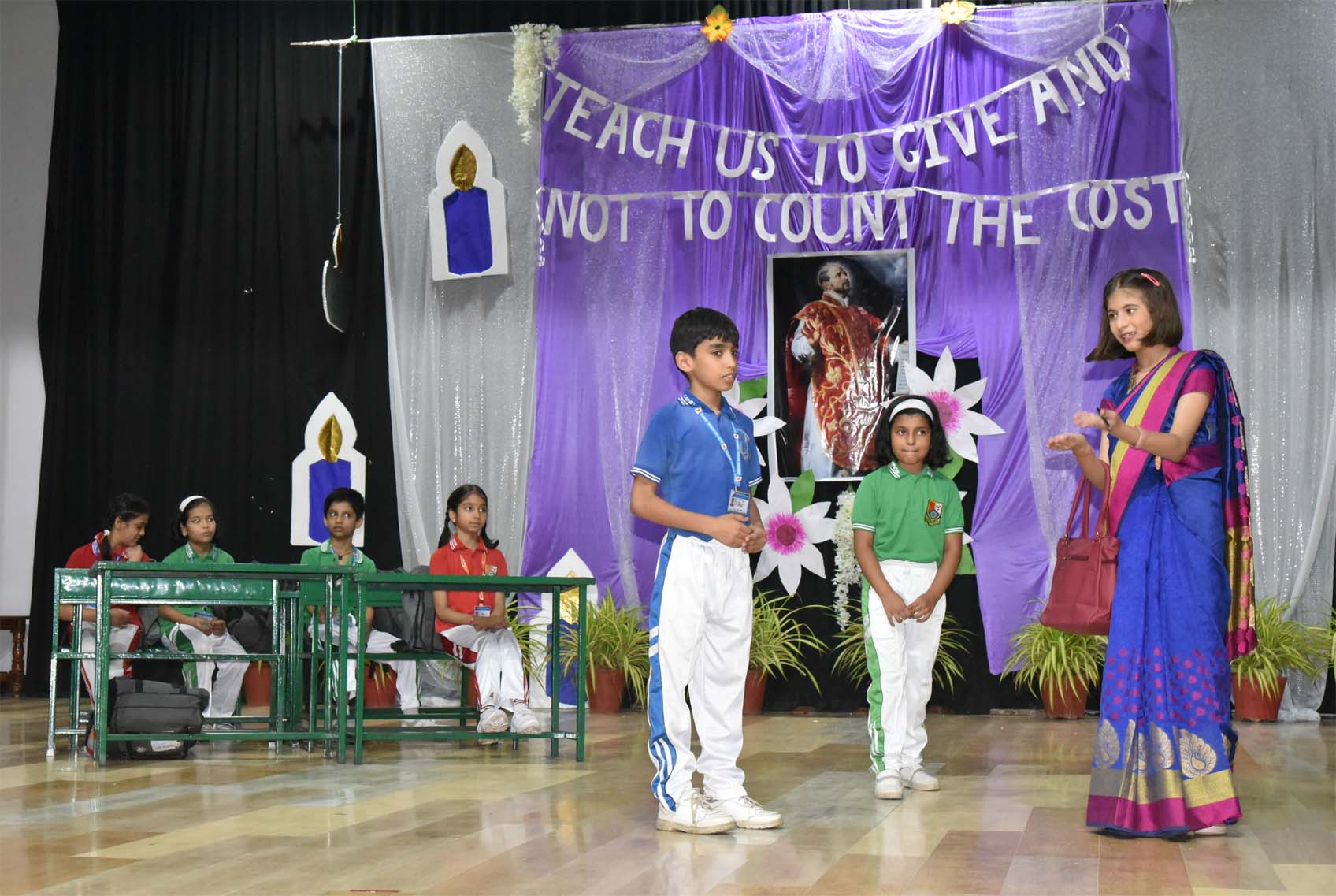 The Feast Day of St. Ignatius of Loyola is celebrated exceptionally and Spiritually way with great Devotion, fervour, Enthusiasm and zeal in the Loyola Auditorium by the Pre Primary and Primary sections of the Campion School, Arera Colony Bhopal. Special prayers will mark the celebrations of the feast of St. Ignatius of Loyola. The event was presided over by the Principal Fr. Dr. Athnas Lakra S.J., & the school Superior Fr. Kapil Xaxa S.J. The programme commenced solemnly with a grand welcoming and escort for the Fathers and Brothers to the Loyola auditorium and proceeded for the traditional lighting of the lamp & felicitation of fathers and brothers with tika, stalk, bouquets and greeting cards. The Lighting of the lamp was done by the Superior & Manager Fr. Kapil S.J., along with the Principal Fr. Dr. Athnas Lakra S.J., vice Principal Fr. Manoj Minj S.J., Headmistress Sister Renisha A.C., Bursar Fr. Blacius Kullu S.J. Thereafter the Welcome Speech and a Prayer of the faithful presented. A beautiful welcome dance was presented by the supporting staff of the primary section. Significance of the day presented by the primary students. A mesmerizing, rhythmic prayer dance evoked the blessings of the Almighty. The life of St. Ignatius was presented in the form of a dance drama. Merriment was added to the programme by a melodious wishing song and a foot-tapping, lively celebration dance. Apart from special prayers, lots of other colourful cultural programmes will be organized at Campion School to mark the patron saint day. This was followed by a Celebration dance and variety entertainment programme staged by the students of the schools. Cake cutting by the Fathers also took place on this occasion. Blessings were given by Fr. Principal. This celebration and felicitation of the primary programme was prepared under the guidance of Headmistress Sr. Renisha A.C, Sister Deepshika and the teachers of the pre primary and primary sections. Master of ceremony was done by primary teacher Ms. Sharbani. All the staff from pre primary and primary was also present on this occasion.
