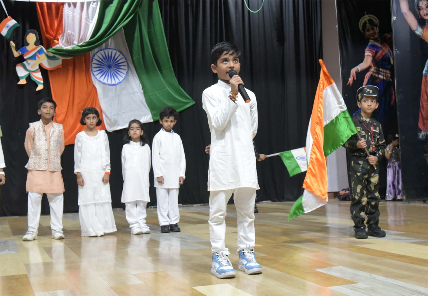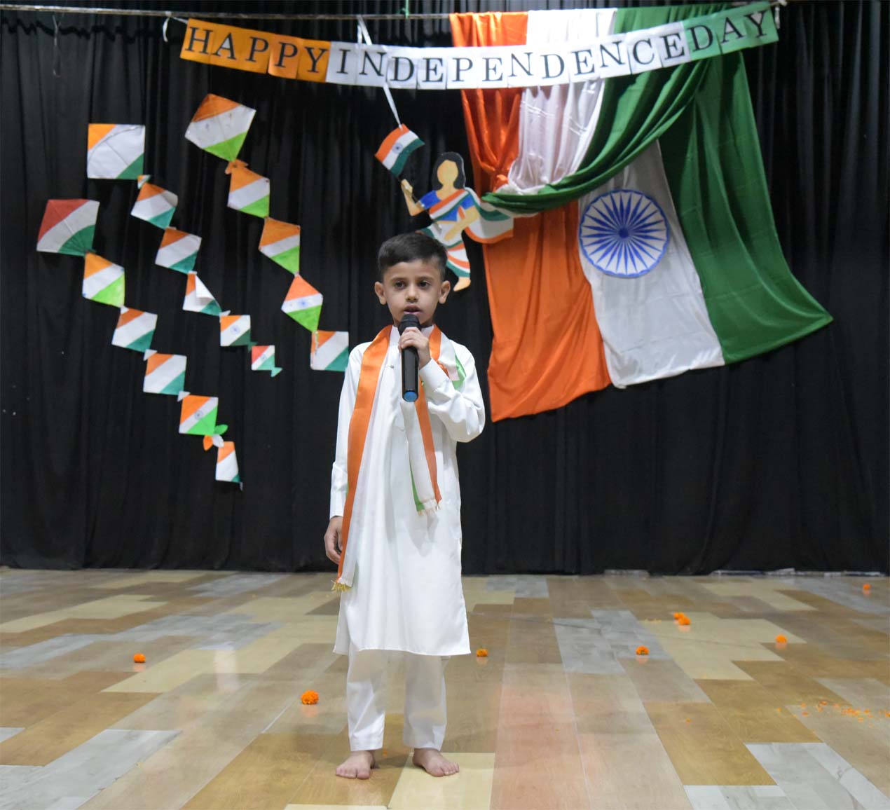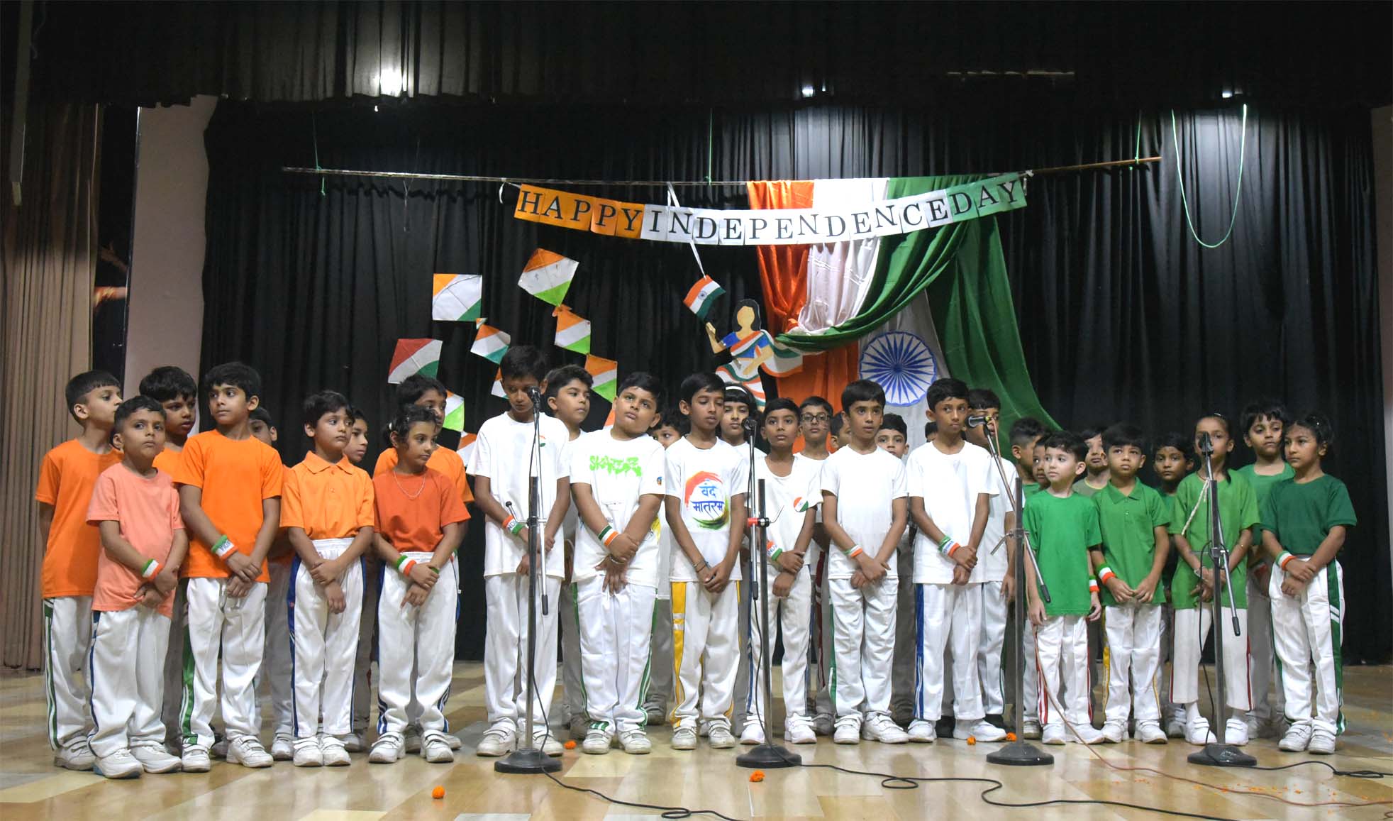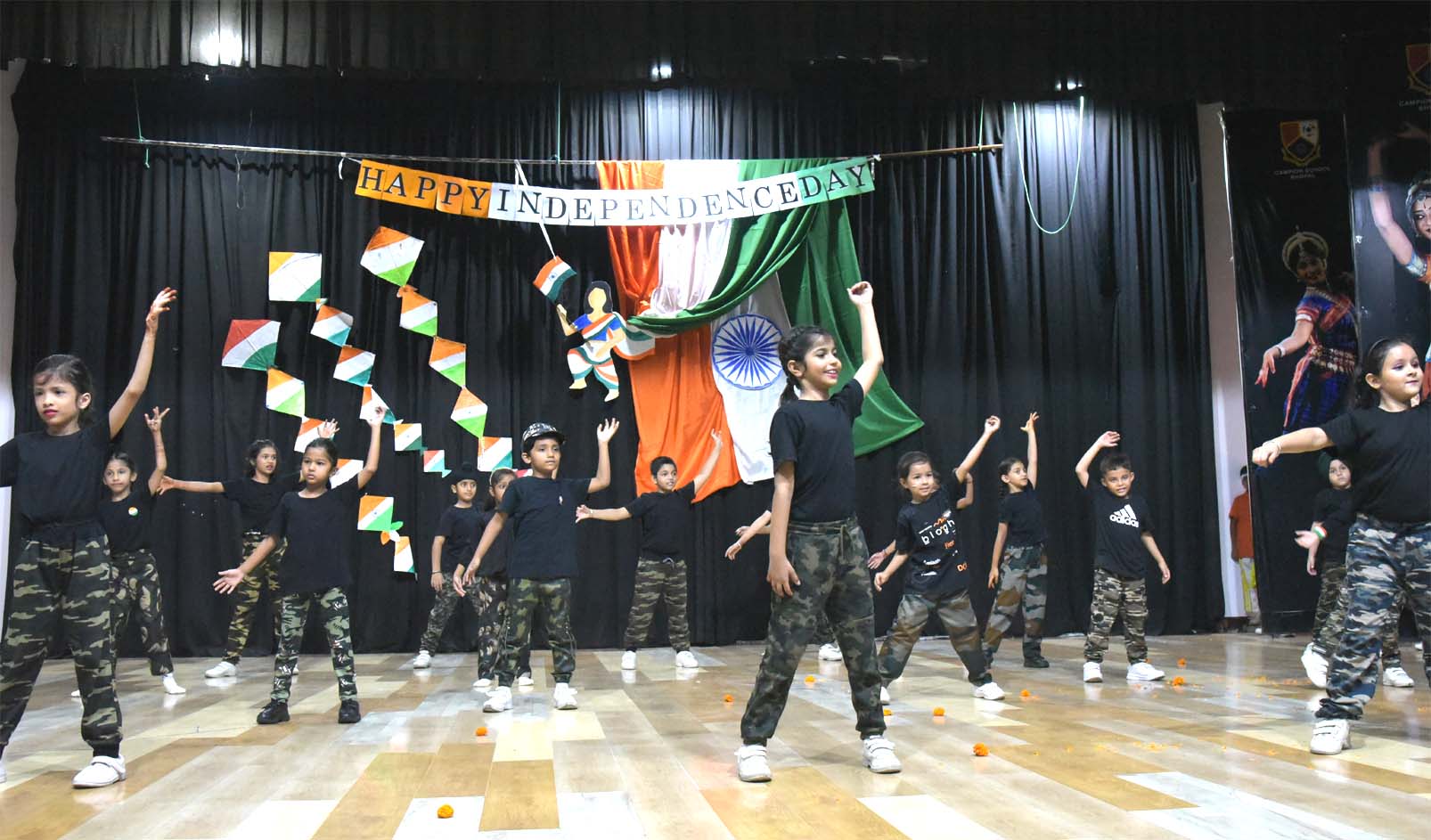 Campion School, Bhopal Pre-Primary and Primary sections celebrated India’s 79th Independence Day, on August 14, 2025, with a great deal of patriotism, joy, enthusiasm, and zeal in the Loyola Auditorium of the school premises. Hundreds of students from the Pre-Primary (KG), & primary sections, along with all the teachers and staff of the school, were present and celebrated this occasion. The school echoed patriotic fervour as the teachers and staff drew scenes of Independence Day celebrations, sang patriotic songs, and even wore tri-coloured clothes to mark the occasion. On this occasion, Tiny Tots from the Pre-Primary (KG), Primary sections sang and danced to a patriotic song. Students from Pre-Primary (KG), and primary took pride in glorifying and celebrating the spirit of unity. To mark the importance of the day, Superior & Manager Fr. Kapil SJ, Principal Dr. Fr. Athnas Lakra SJ, Vice Principal Fr. Manoj Minj SJ, Bursar Fr. Blacius Kullu, Headmistress Sister Renisha AC, other sisters, and all teachers of pre-primary and primary were present on this occasion.
