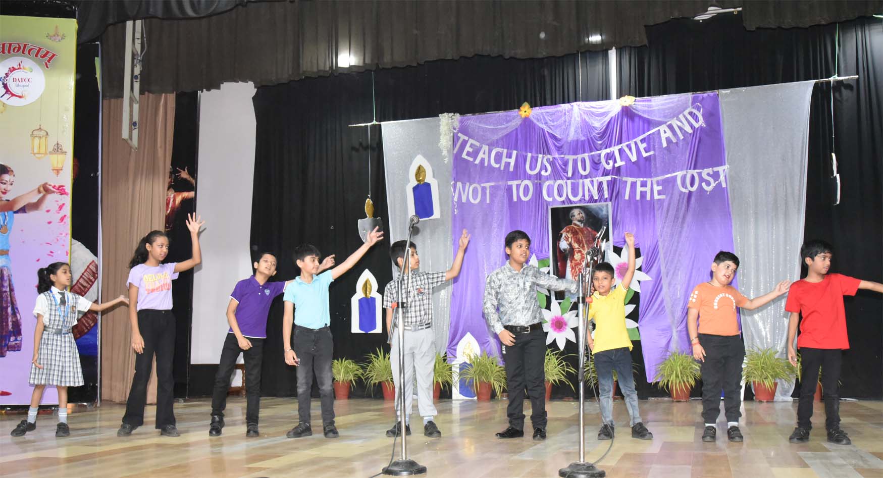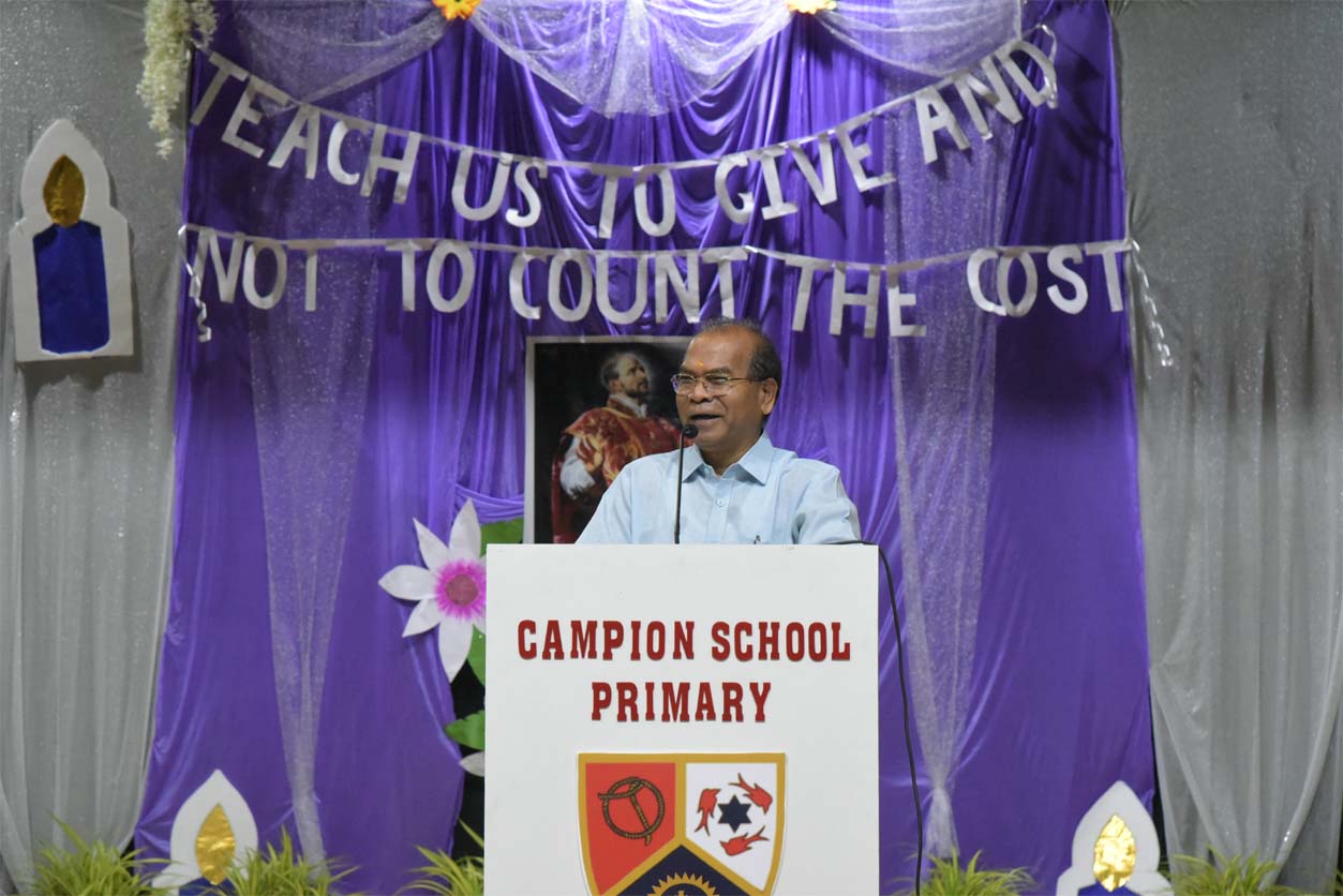 The Feast Day of St. Ignatius of Loyola is celebrated exceptionally and Spiritually way with great Devotion, fervour, Enthusiasm and zeal in the Loyola Auditorium by the Pre Primary and Primary sections of the Campion School, Arera Colony Bhopal. Special prayers will mark the celebrations of the feast of St. Ignatius of Loyola. The event was presided over by the Principal Fr. Dr. Athnas Lakra S.J., & the school Superior Fr. Kapil Xaxa S.J. The programme commenced solemnly with a grand welcoming and escort for the Fathers and Brothers to the Loyola auditorium and proceeded for the traditional lighting of the lamp & felicitation of fathers and brothers with tika, stalk, bouquets and greeting cards. The Lighting of the lamp was done by the Superior & Manager Fr. Kapil S.J., along with the Principal Fr. Dr. Athnas Lakra S.J., vice Principal Fr. Manoj Minj S.J., Headmistress Sister Renisha A.C., Bursar Fr. Blacius Kullu S.J. Thereafter the Welcome Speech and a Prayer of the faithful presented. A beautiful welcome dance was presented by the supporting staff of the primary section. Significance of the day presented by the primary students. A mesmerizing, rhythmic prayer dance evoked the blessings of the Almighty. The life of St. Ignatius was presented in the form of a dance drama. Merriment was added to the programme by a melodious wishing song and a foot-tapping, lively celebration dance. Apart from special prayers, lots of other colourful cultural programmes will be organized at Campion School to mark the patron saint day. This was followed by a Celebration dance and variety entertainment programme staged by the students of the schools. Cake cutting by the Fathers also took place on this occasion. Blessings were given by Fr. Principal. This celebration and felicitation of the primary programme was prepared under the guidance of Headmistress Sr. Renisha A.C, Sister Deepshika and the teachers of the pre primary and primary sections. Master of ceremony was done by primary teacher Ms. Sharbani. All the staff from pre primary and primary was also present on this occasion.