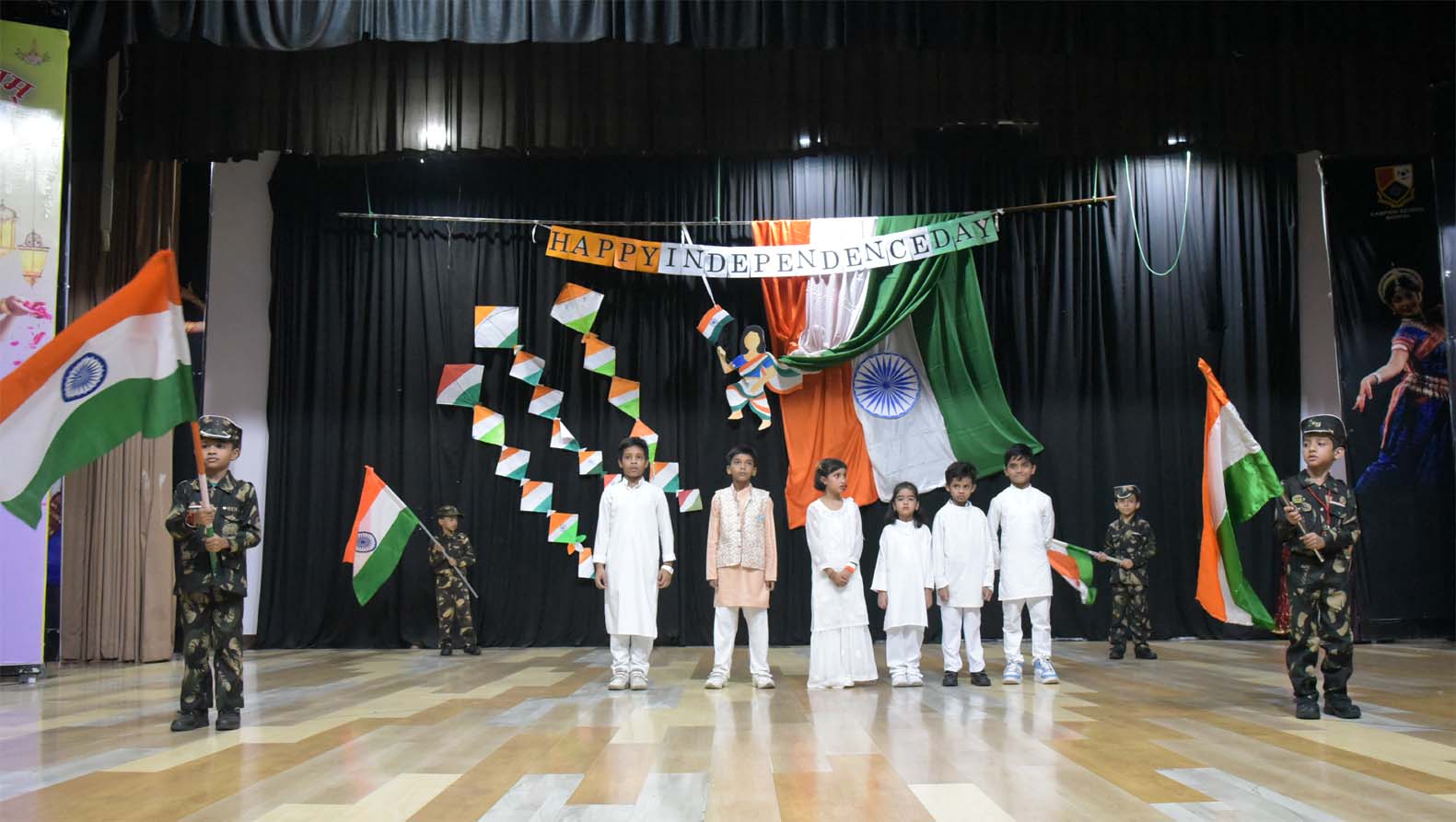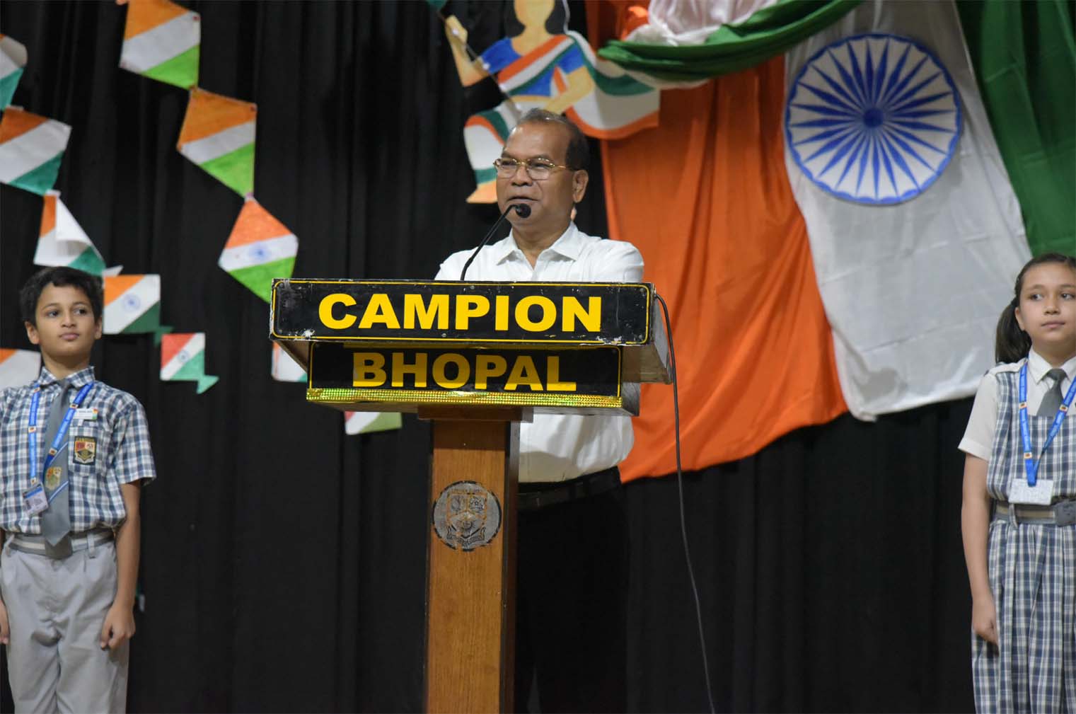 Campion School, Bhopal Pre-Primary and Primary sections celebrated India’s 79th Independence Day, on August 14, 2025, with a great deal of patriotism, joy, enthusiasm, and zeal in the Loyola Auditorium of the school premises. Hundreds of students from the Pre-Primary (KG), & primary sections, along with all the teachers and staff of the school, were present and celebrated this occasion. The school echoed patriotic fervour as the teachers and staff drew scenes of Independence Day celebrations, sang patriotic songs, and even wore tri-coloured clothes to mark the occasion. On this occasion, Tiny Tots from the Pre-Primary (KG), Primary sections sang and danced to a patriotic song. Students from Pre-Primary (KG), and primary took pride in glorifying and celebrating the spirit of unity. To mark the importance of the day, Superior & Manager Fr. Kapil SJ, Principal Dr. Fr. Athnas Lakra SJ, Vice Principal Fr. Manoj Minj SJ, Bursar Fr. Blacius Kullu, Headmistress Sister Renisha AC, other sisters, and all teachers of pre-primary and primary were present on this occasion.